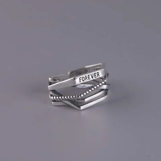 100% Genuine 925 Sterling Silver Line Winding Shape Forever letter Open Rings For Women Creative Design Lady Fine Jewelry Gifts