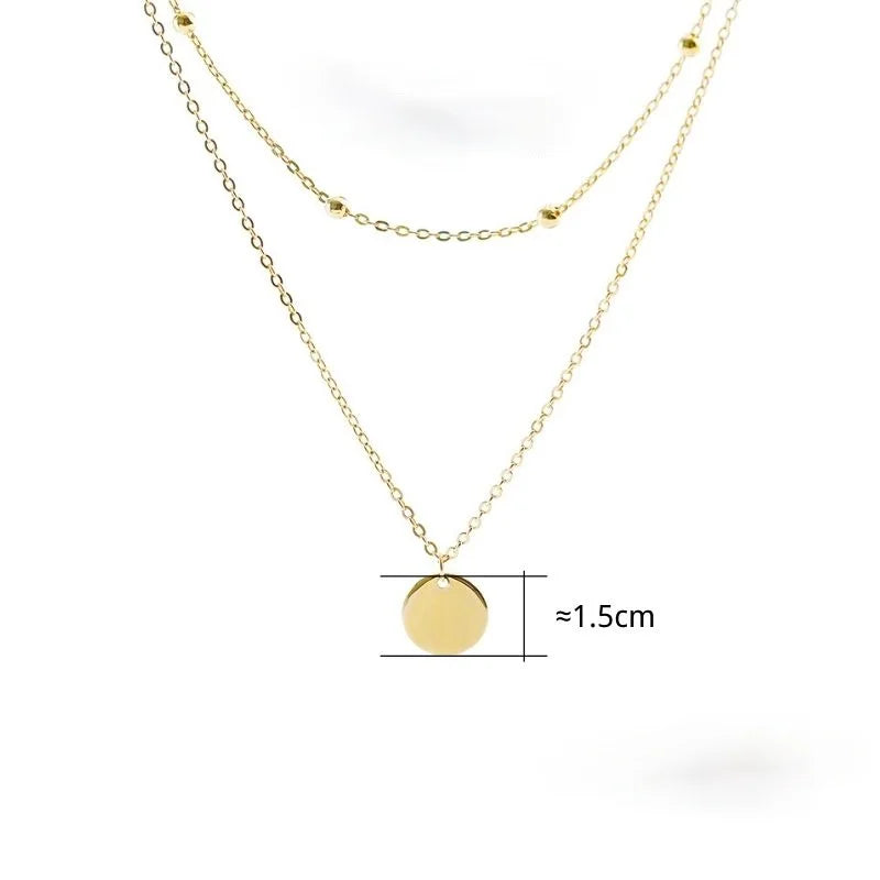 Silver Color Double Layer Round Disc Necklace Gold Bead Chain Charm Necklace For Women